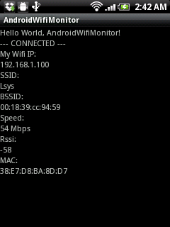 Modify AndroidWifiMonitor.java only, the other files are same as last exercise "Monitor Wifi status and information with BroadcastReceiver".